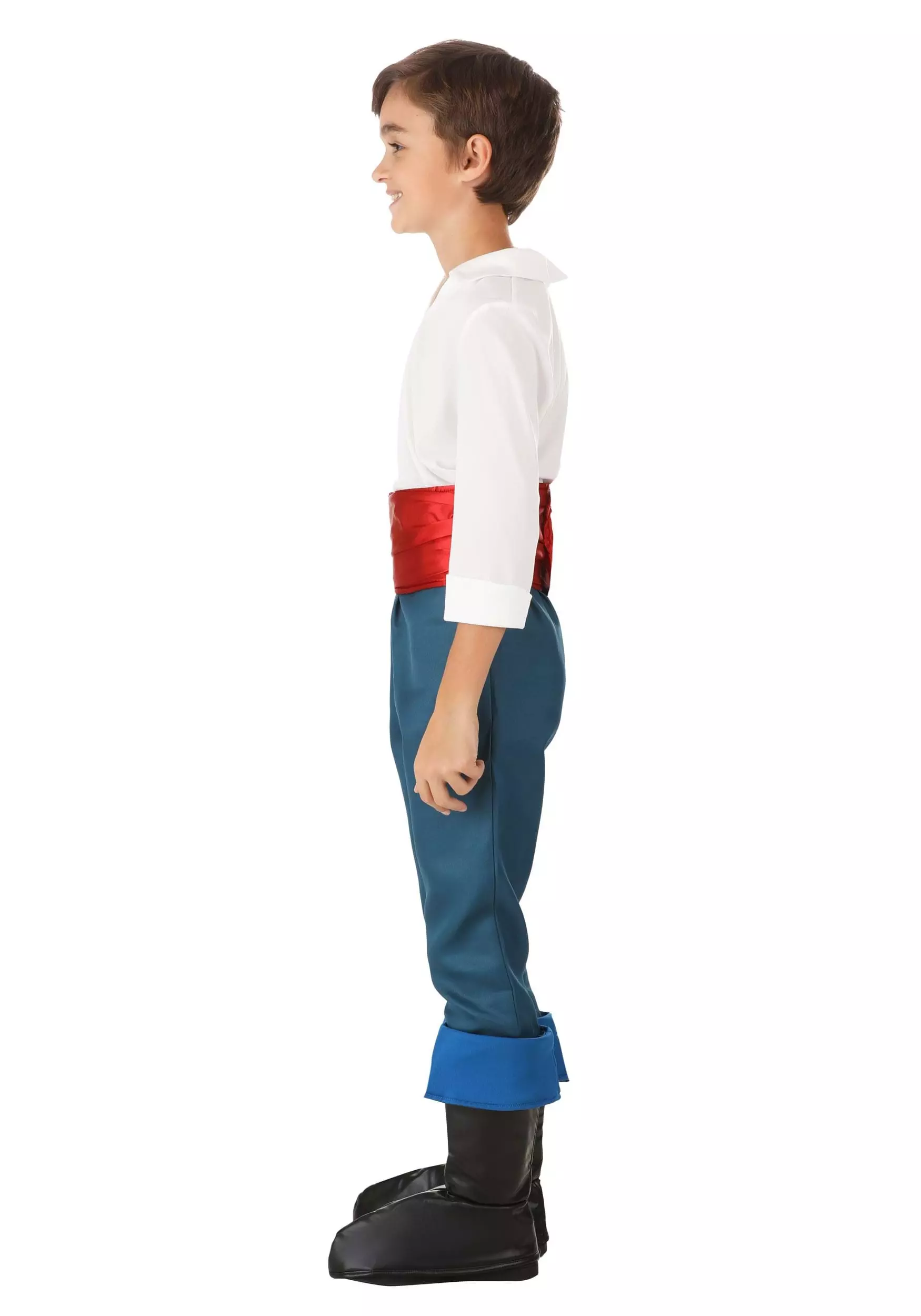 Let your little one be the hero of the high seas with our officially licensed Disney Prince Eric Costume from Disney’s The Little Mermaid! We designed this outfit to look like Eric’s iconic ensemble. The first piece is a white shirt with a v-cut neckline, collar, and cuffed sleeves. Blue polyester makes up the pants, which imitate Eric’s sailor garb. Black leatherette boot covers turn your child’s favorite pair of shoes into sea-ready footwear. The finishing detail is provided by a shiny red satin sash which ties the whole look together. Your kiddo will feel just like this dashing prince whenever they wear this exciting ensemble!
