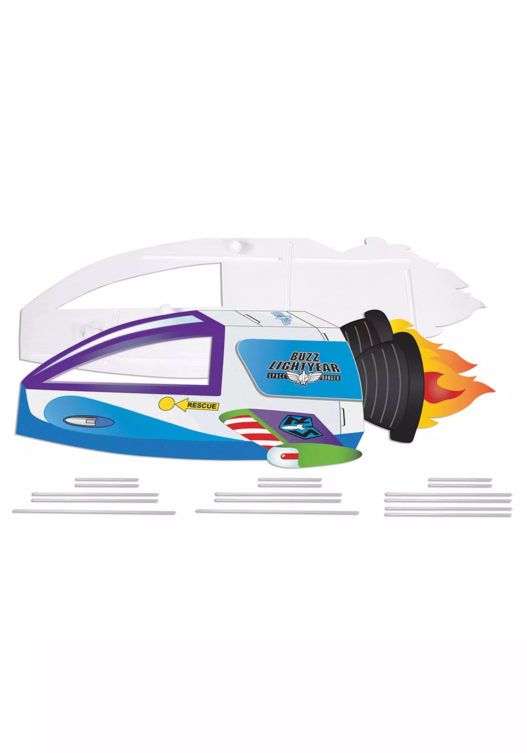 Explore beyond infinity with your officially licensed Buzz Lightyear Spaceship Wheelchair Cover! The stiff felt sides are shaped like Buzz’s rocket ship and full of fun details, including the flame shooting out the back of the rockets and a cutout window that lets passersby see the daring spaceman inside. The sides are supported by no less than 16 pieces of plastic piping and attach securely to your chair with self-stick fabric strips. Thanks to its ease of assembly, you’ll be exploring the galaxy (or the cul-de-sac) in a jiffy!Â