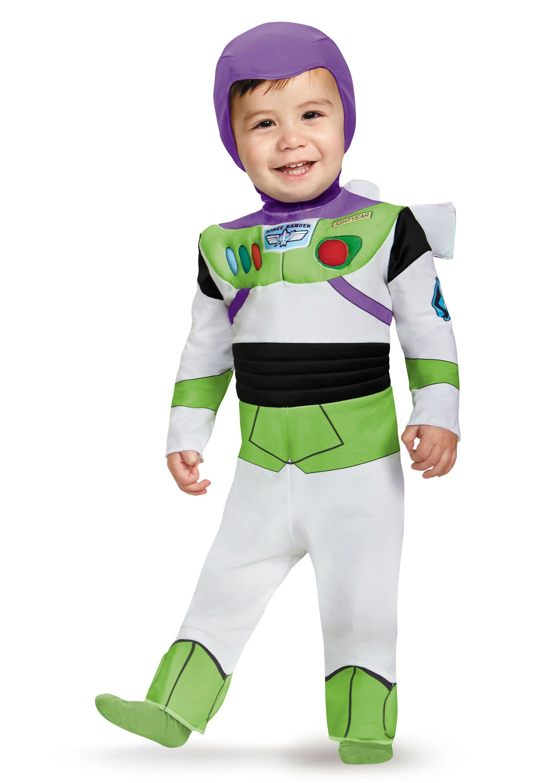 What little kid doesn’t want to fly a spaceship and use rocket packs to jet around? And every kid wants to make friends with cowboys and cowgirls, Mr.Potato Head, slinky dog, horses, piggy banks, not to mention dinosaurs. Those are by far the coolest folks anyone on this planet could know! Buzz truly has the life, not having to eat vegetables, flying with a jet pack, always having the best lines in Toy Story movies! This costume will make space exploration way easier with it’s “can do” attitude. The tot wearing this will obliviously absorb all off Buzz’s coolness just by wearing this garb.