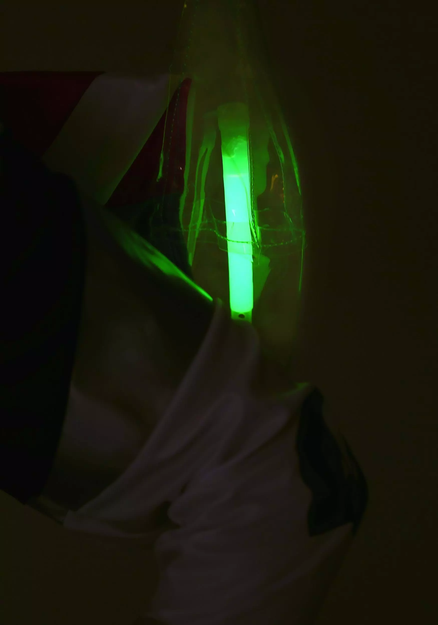 - Clear green plastic jets on each wing have pockets for glow sticks