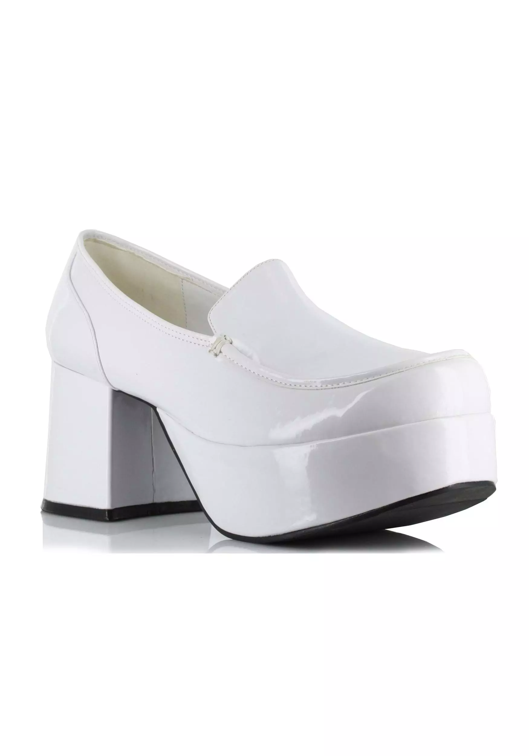 Step into style when you step into this pair of White Daddio Pimp Shoes. These faux leather loafers fit comfortably thanks to the inner lining while looking stellar and shiny, to boot. Transport yourself to decades past with a three-inch heel on top of thick platform height. You’ll only be sliding into fun thanks to the anti-slip soles, so you can put all the focus into your moves and the rest of your Disco duds.Â