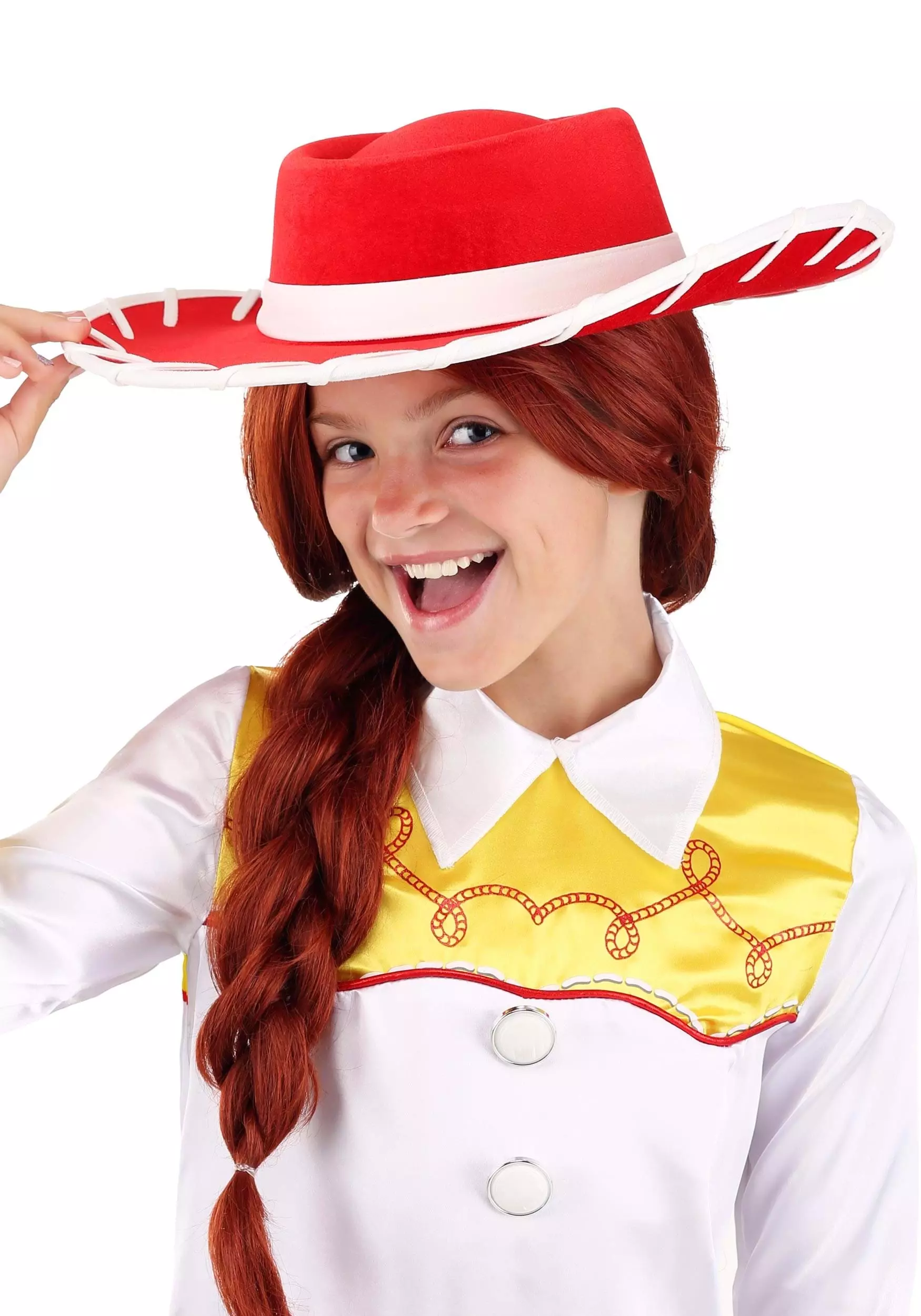 Let’s take a moment to recall the moving montage in Toy Story 2 when Jessie, that rootin’-tootin’ cowgirl we all adore, remembers the way her pal, Emily, loved her and then outgrew her…we’ll wait why you grab the box of tissues. Well, here’s the good news: this Toy Story Jessie hat will never have reason to feel that sad, as you’re bound to hold onto it forever and call on it for all of your future costuming needs. It can live its hat life joyfully, basking in its cherished space on your closet shelf. Pair it with one of our Jessie tops or outfits, or just infuse your own ole’ west charm into an cowgirl getup of your choosing (just don’t forget the braids). Find a pal dressed as Woody or Buzz and discuss what you think your clothes do while you’re out of the house. Maybe your boots n’ buckles are having parties all their own.