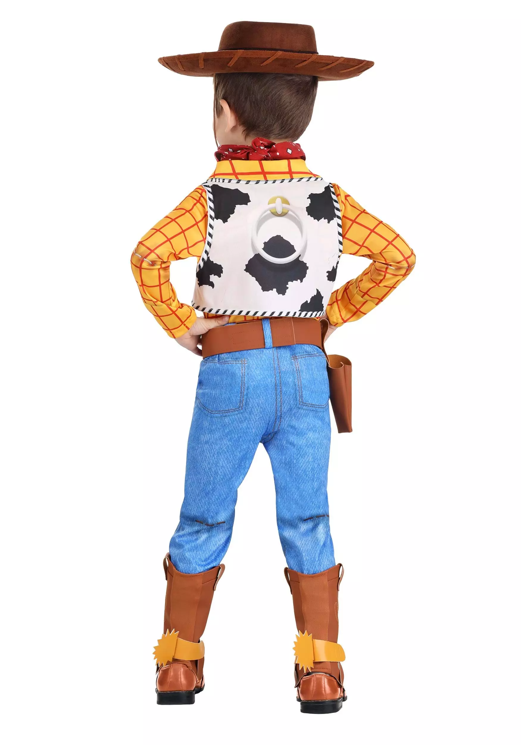 Grant playtime wishes when you bring home our Deluxe Disney and Pixar Woody Toddler costume from Toy Story! The officially licensed ensemble recreates Woody’s iconic look with thoughtful pieces from the Made By Us team. Your toddler is ready to dive into Toyland outfitted in sturdy yet comfortable jersey pants, shirt, vest, and bandana. Each piece features print designs giving the costume a high-detailed finish. Once layered, the look comes down to accessories. Comfortable footwear or stockinged feet become boots under embroidered leatherette shoe covers. The elastic waist-banded pants are given a polished look with a leatherette belt. And the entire outfit is capped off with our exclusive Woody hat.