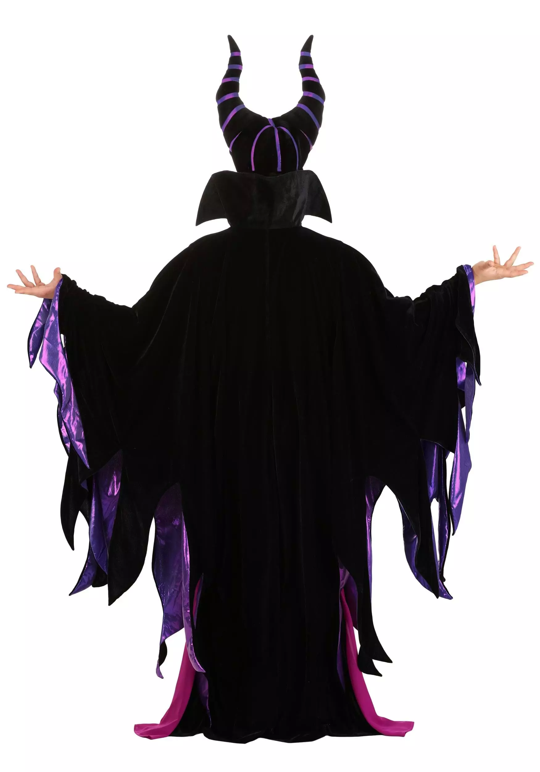 A magenta skirt drapes to the floor thanks to its chiffon construction. Over the stylish skirt Maleficent’s iconic robe is worn. Its black velvet and purple satin design gives the garment a soft, structured look from high collar to flame-like sleeve hems. Dressed in the main pieces, your Maleficent side is sure to shine. But the final piece of this Made By Us ensemble guarantees it. So, don’t forget to secure the soft-sculpted headpiece before joining the Halloween legions!