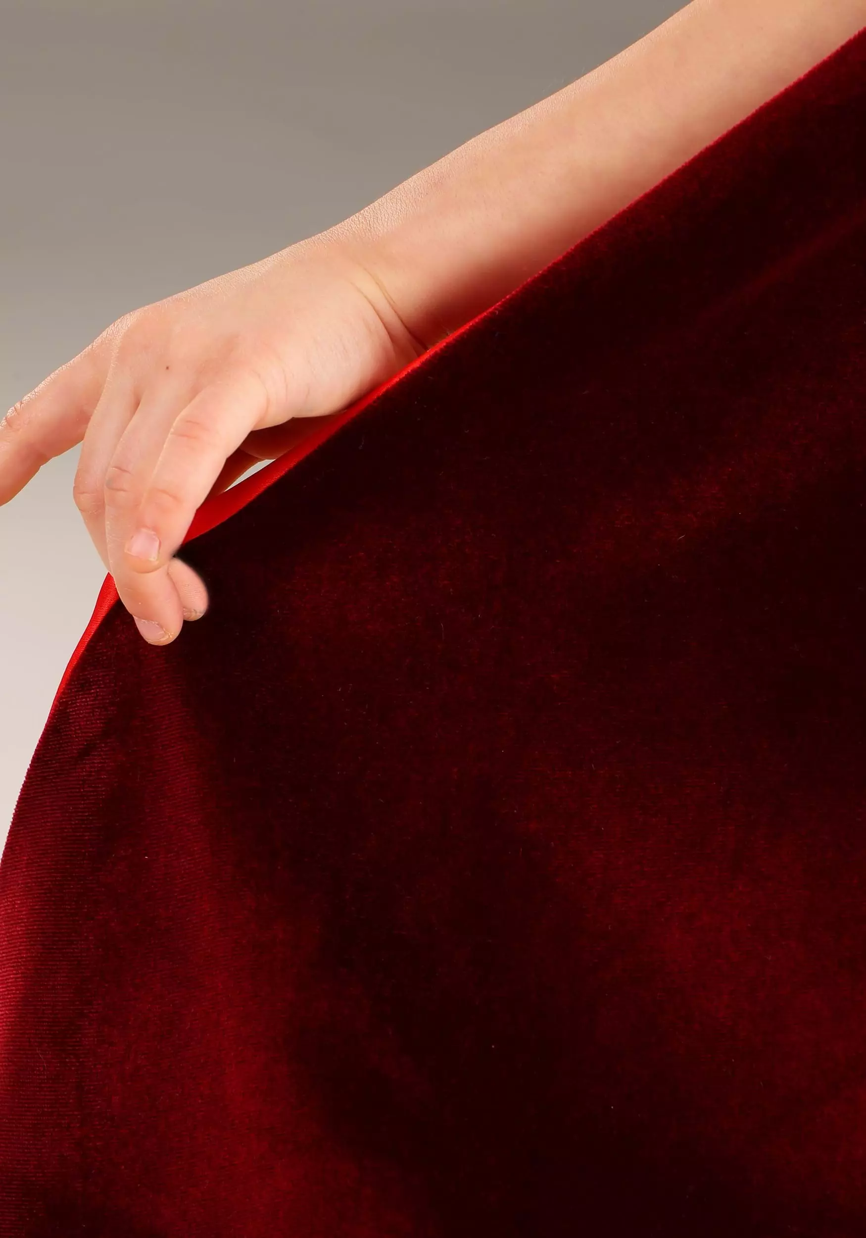 - Cape has outer red stretch velvet fabric w/ deluxe red satin fabric lining
