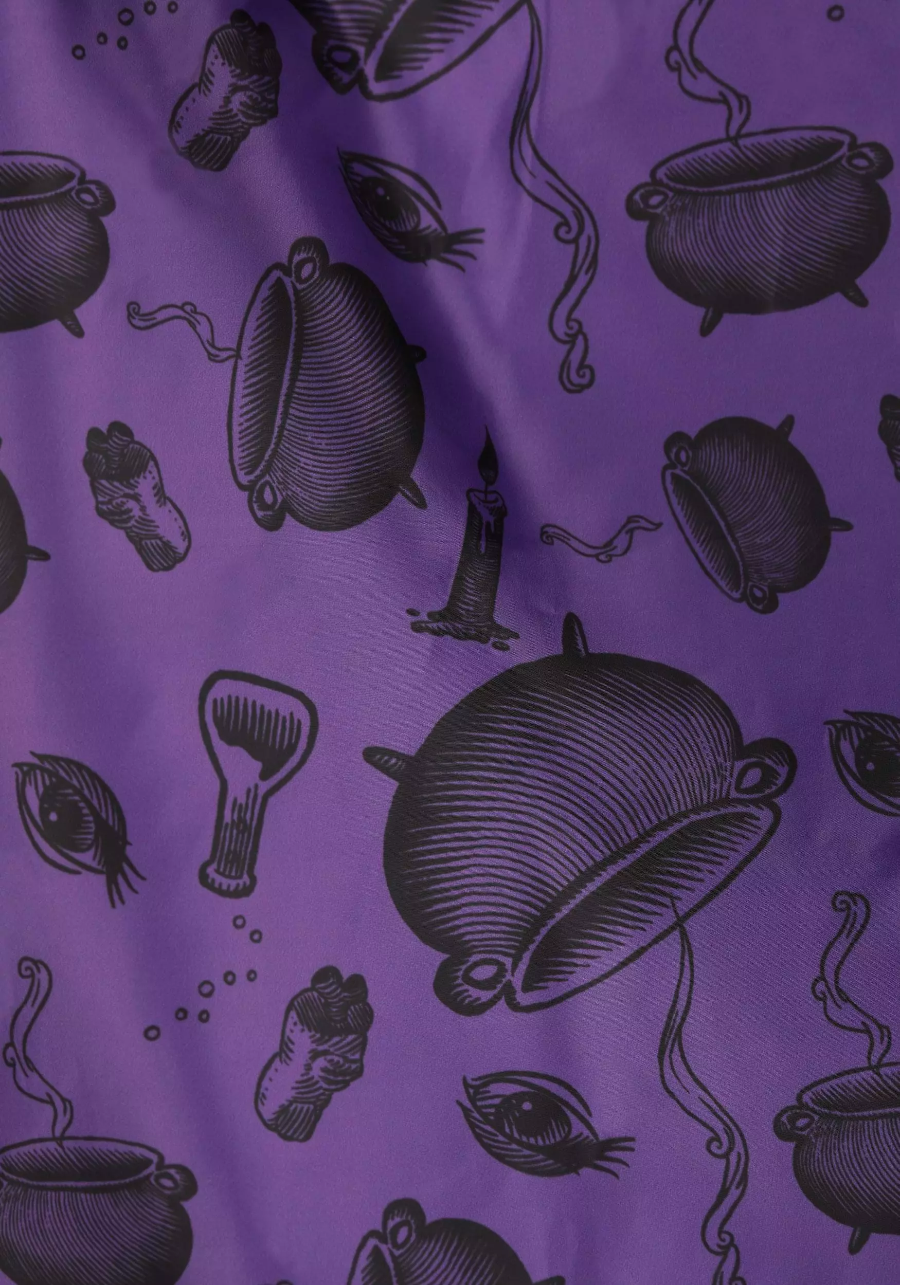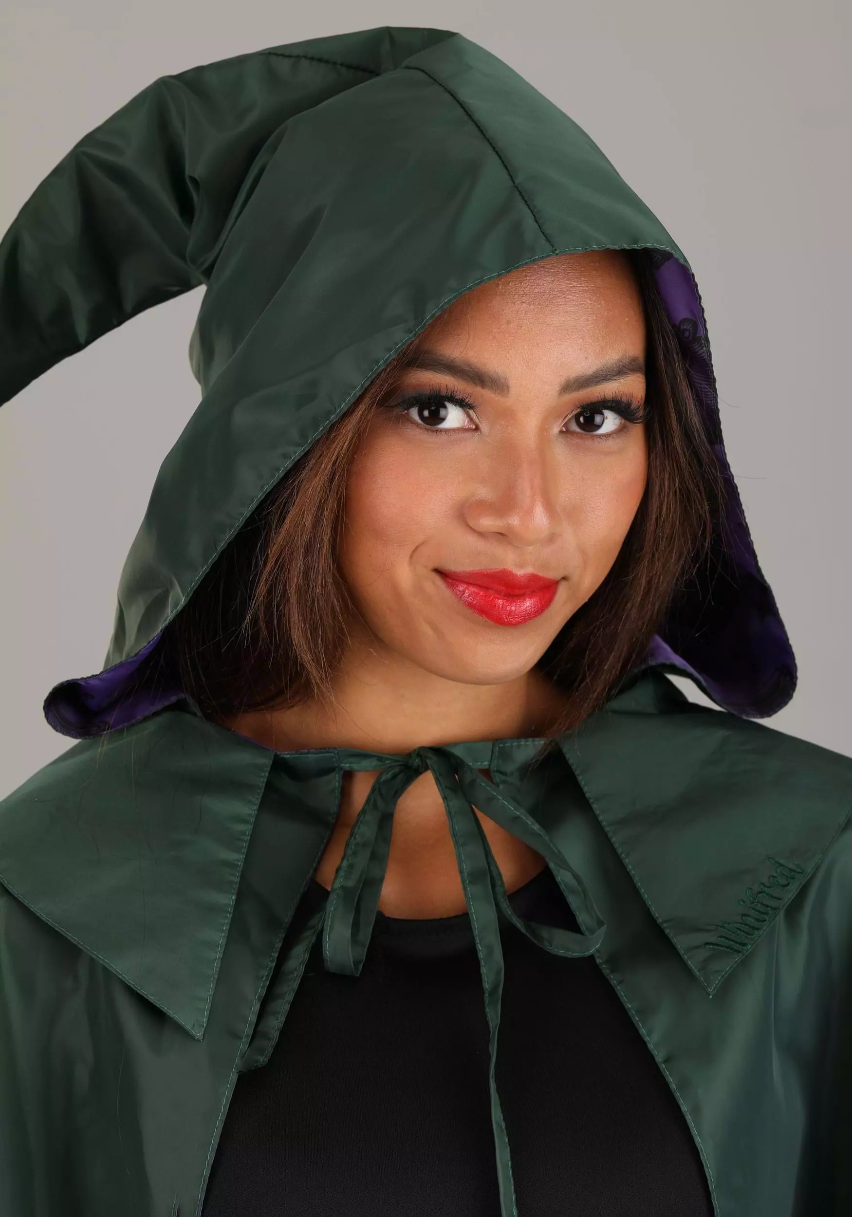The gorgeous green cape features an oversized hood—critical for anyone with big hair—and has fabric ties to keep the cape secure as it drapes down your shoulders. Winifred’s name is embroidered on the collar, and a dazzling purple lining provides some magical contrast, all while emblazoned with festive graphics throughout the interior! Use this to add a little flair to your evening look or complete the ultimate Hocus Pocus costume.