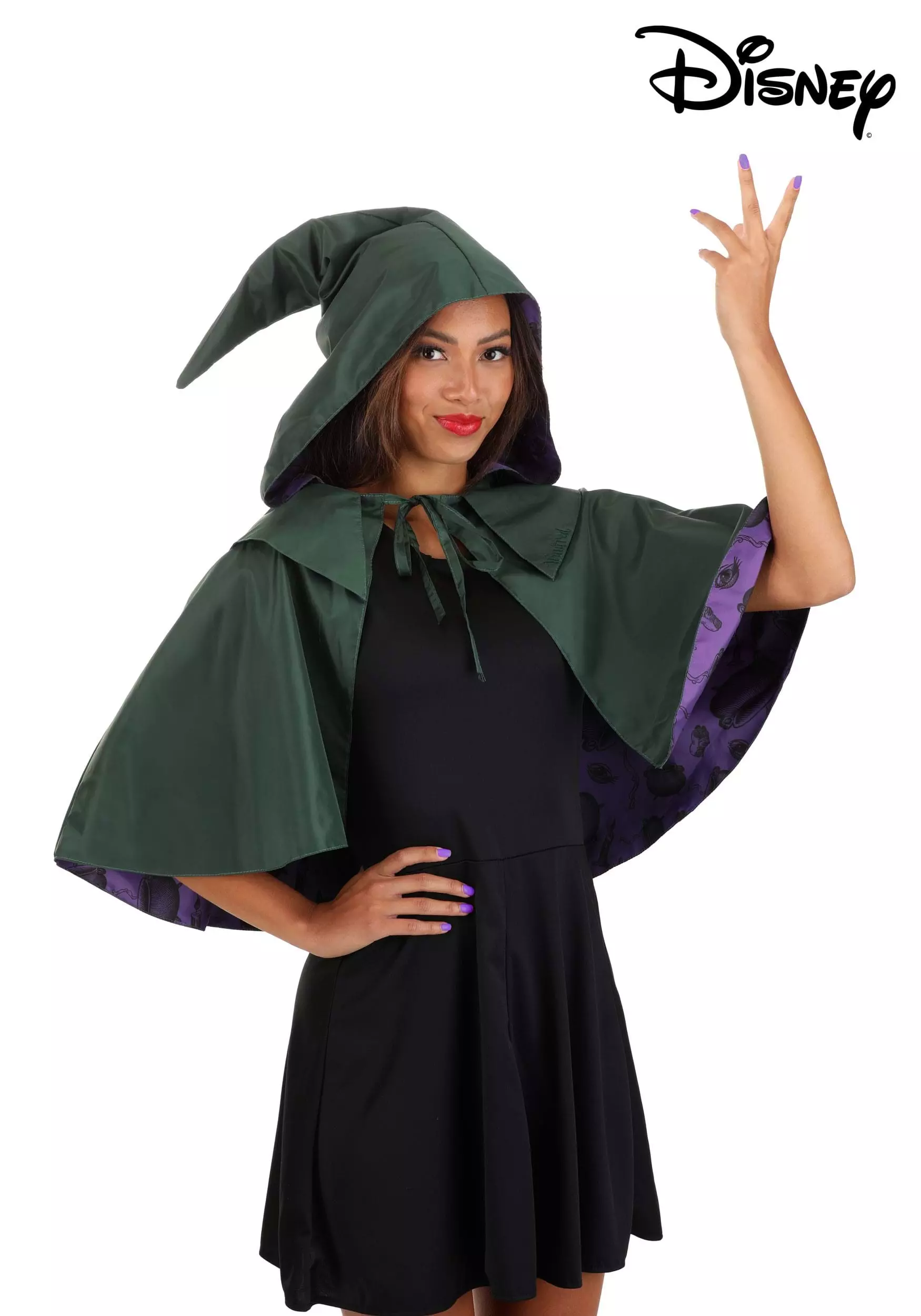 Claim Halloween night as your own when you stride onto the scene with this officially licensed Winifred Sanderson Hooded Capelet. This Made By Us accessory is the perfect way to augment any outfit and is inspired by the iconic appearance of Winifred from Disney’s Hocus Pocus.